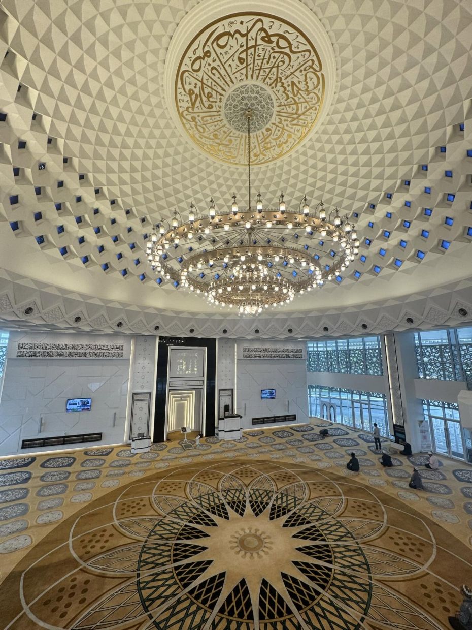 Dindingnya dihiasi panel kaligrafi besar berwarna cerah, sekali gus memberikan identiti Islamik yang elegan.