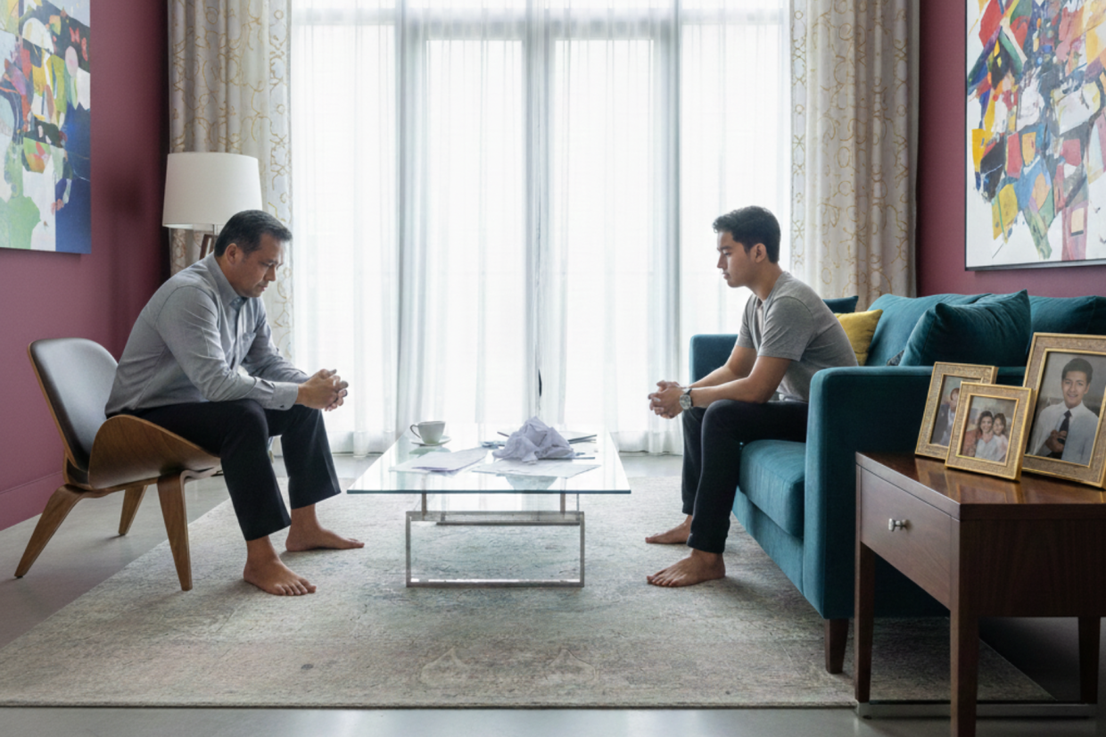 "Aku mungkin bukan anak yang baik dalam cerita orang lain, tetapi aku sedang cuba jadi ayah yang lebih baik dalam cerita aku sendiri," katanya sambil menegaskan, jaraknya bukan untuk menghukum sesiapa, tetapi untuk memastikan anak-anaknya tidak mengalami perkara yang sama. — Majoriti