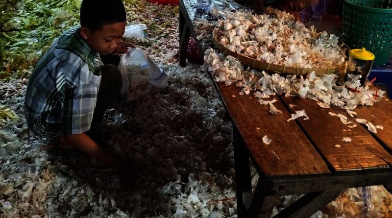 "Ada kulit bawang putih yang sudah sedia di dalam bekas, tinggal diambil. Ada juga yang saya perlu pungut dan kumpul sendiri di dalam bekas," jelasnya.