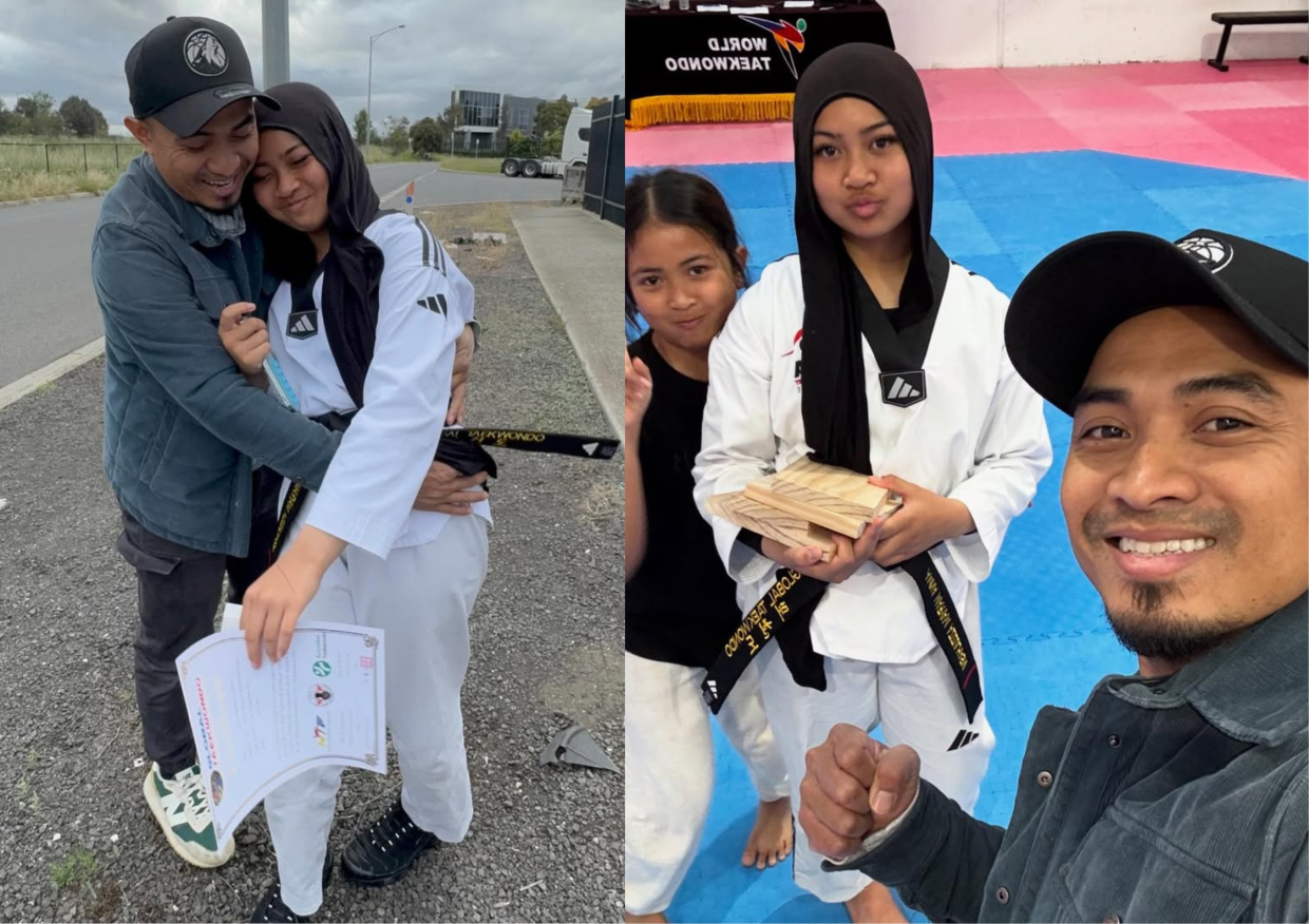 PELUMBA trek negara, Datuk Mohd Azizulhasni Awang berkongsi detik penuh emosi apabila anak sulungnya, Amna Maryam, berjaya meraih Sijil Gred Ke-8 taekwando (tali pinggang hitam) baru-baru ini.