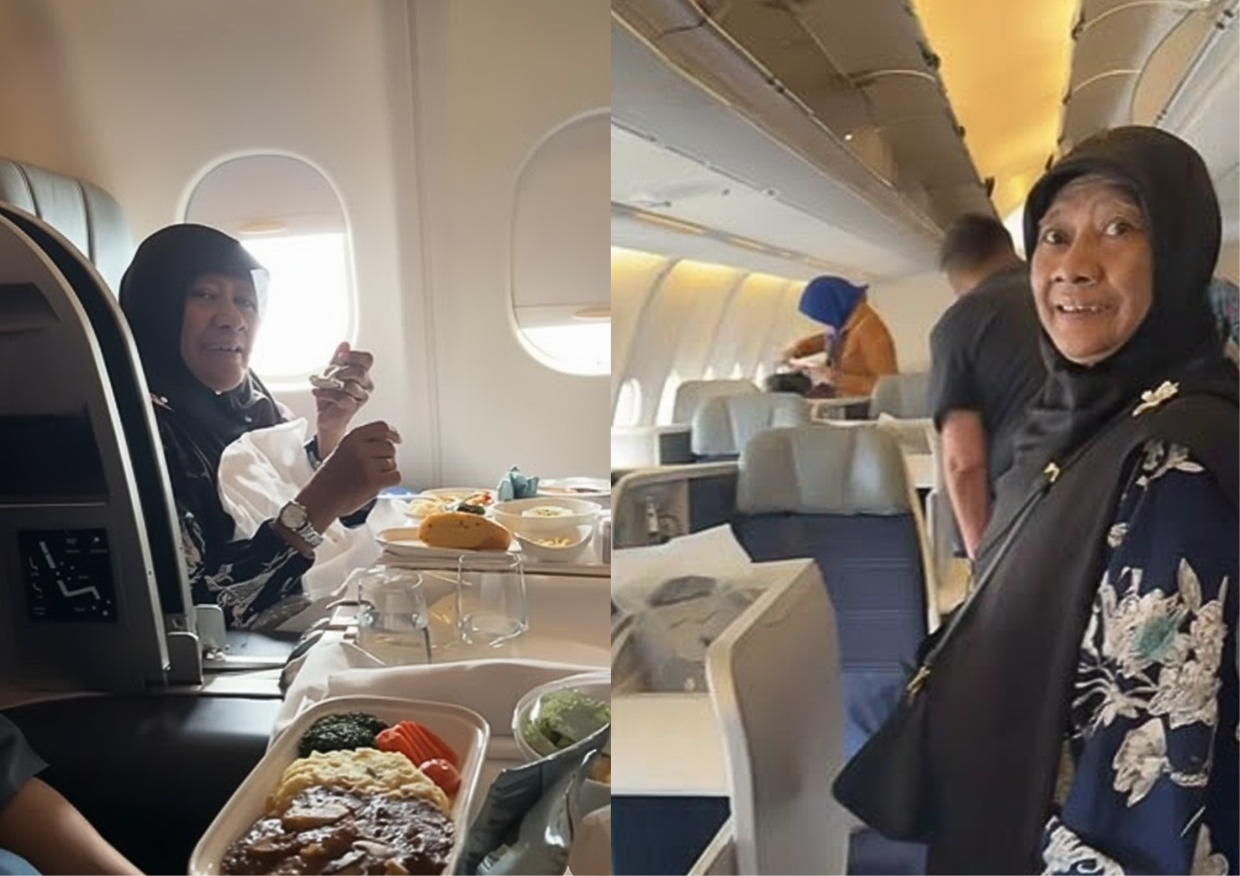 Video tersebut memaparkan ibunya kelihatan teruja sejak di pintu masuk pesawat, sebelum dibawa ke tempat duduk yang lebih luas dan selesa.