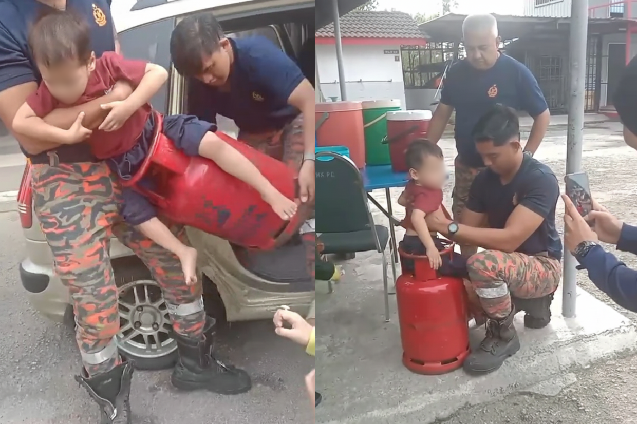 Insiden itu mula tular apabila pengguna TikTok, @dhiya.zainal yang dipercayai ibu kepada kanak-kanak terbabit memuat naik video yang menunjukkan beberapa anggota bomba berhati-hati mengeluarkan kaki anaknya daripada tong gas tersebut.
