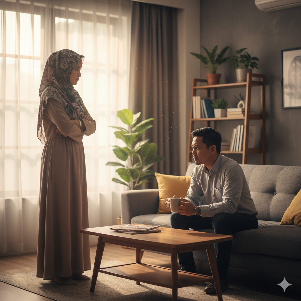Suami dan isteri dalam perbualan tegang di rumah akibat ugutan suami berkaitan perceraian. — Gambar hiasan