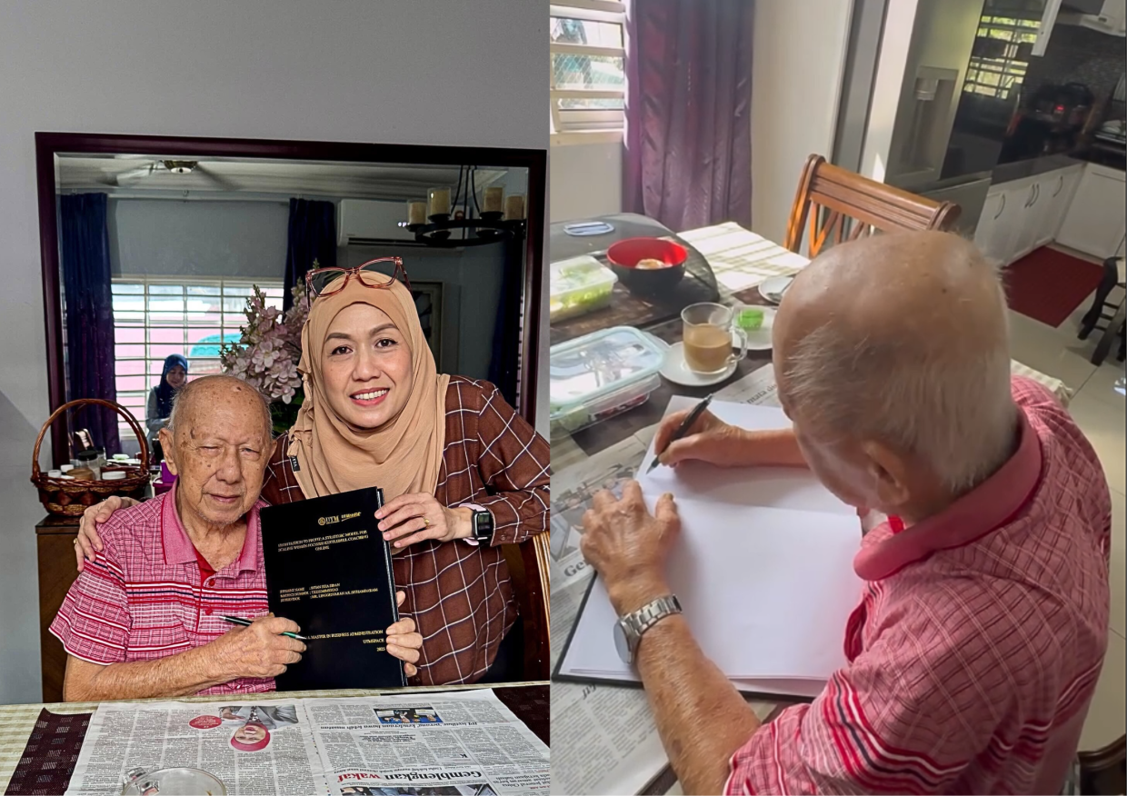Permintaannya membuatkan individu warga emas itu terdiam seketika kerana sejak tinggal bersama kakaknya sekitar 2020, bapanya tidak pernah memegang pen.