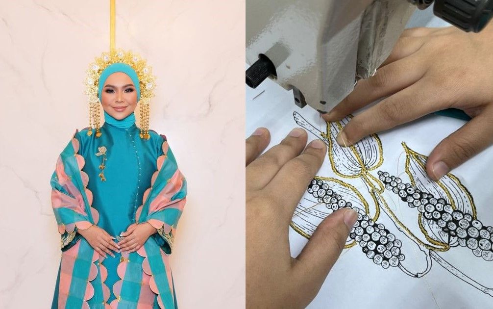 "Karya perlu ada adab dan harga diri. Benang Johor yang ditenun satu persatu, sembat halus tangan dijahit dan dihiasai motif lada hitam buat Aina Abdul.