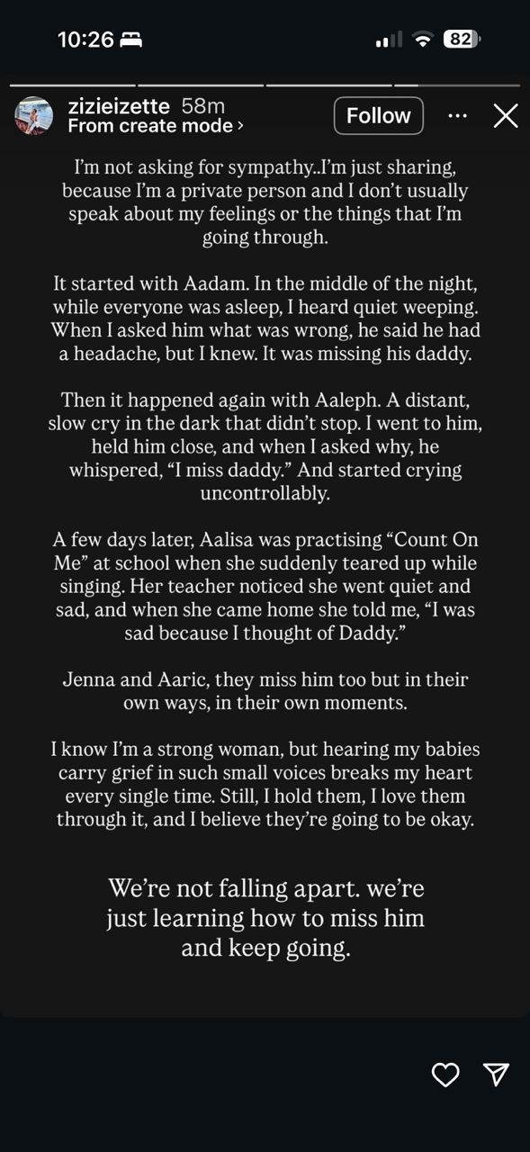 Walaupun mengakui dirinya seorang wanita yang kuat, Zizie berkata, mendengar anak-anak kecilnya menanggung kesedihan dengan suara yang polos dan lembut sentiasa meruntun hatinya.