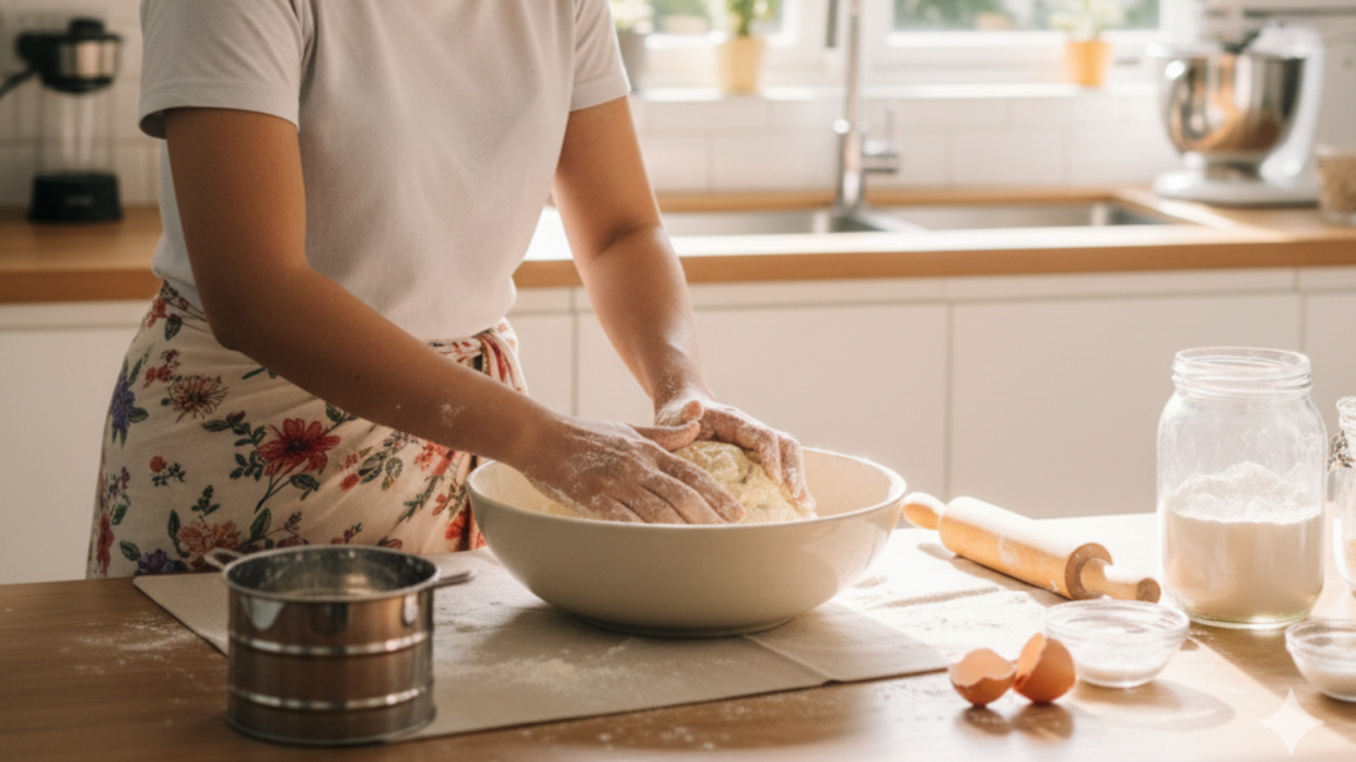 Pemilik blog Lily P. Crumbs, Alex George, pula menekankan kepuasan deria apabila menyentuh bahan mentah secara fizikal. Di dunia yang kini didominasi oleh skrin digital, aktiviti memecahkan telur dan menguli doh menawarkan kepuasan yang nyata.