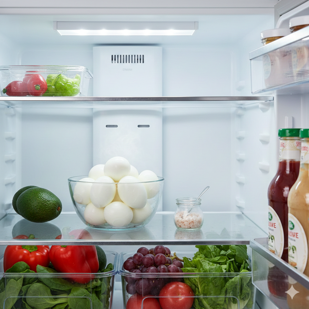 Ada masanya telur direbus dan disimpan dalam peti sejuk sebagai snek segera.