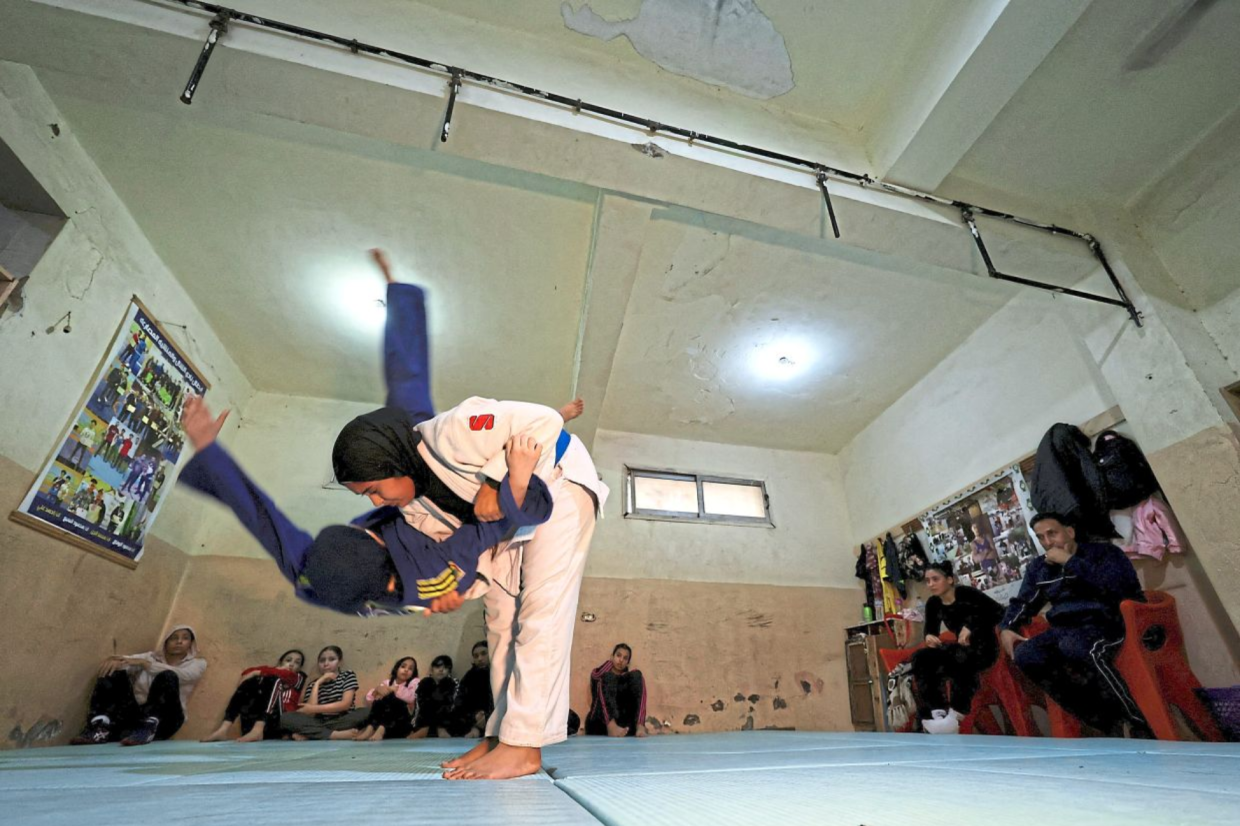 "Dewan cuma 3.5 meter (m) x 3.5m, hampir mustahil untuk lahirkan seorang juara. Tapi kami berjaya" ujar jurulatih Mahmoud Al-Wafaa’i yang melatih gadis-gadis terlibat secara sukarela kerana cintakan sukan.