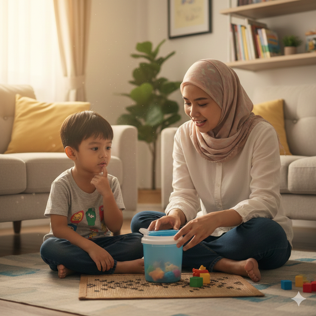Melalui permainan ringkas di rumah, ibu bapa dapat membantu anak membina kefahaman nombor tanpa perlu bergantung kepada latihan bertulis. — Gambar hiasan/Janaan AI