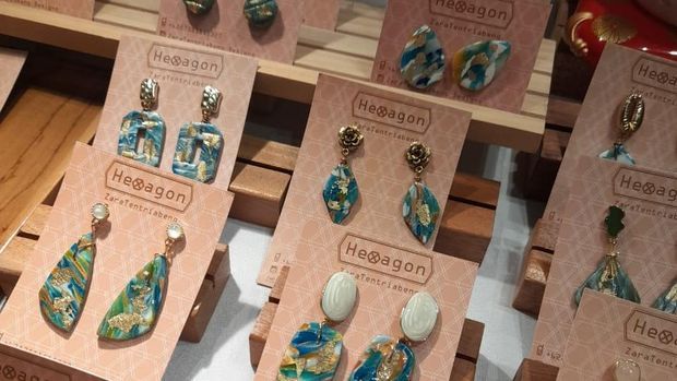 Anting-anting antara aksesori yang dihasilkan daripada bahan kitar semula tersebut. — Agensi