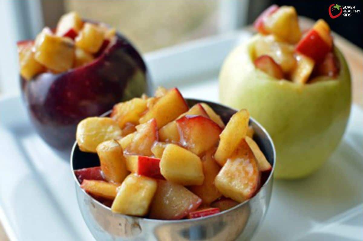 2. Epal. Dimasak hingga lembut dan dikisar menjadi puri.