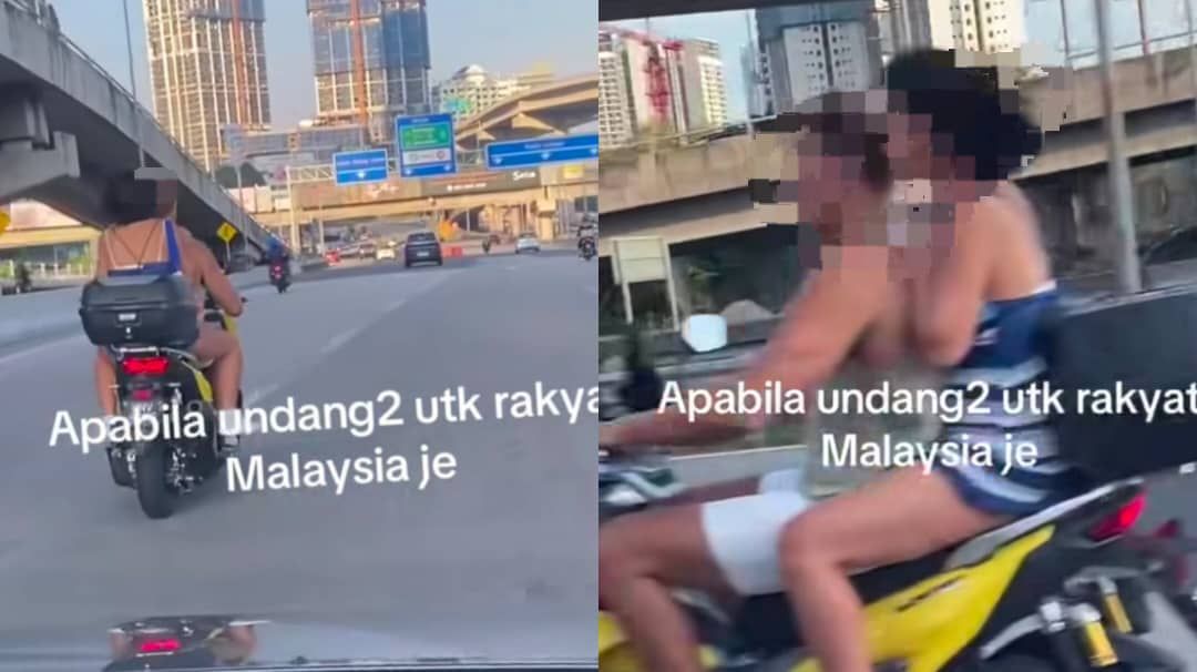 Kedua-duanya pelancong asing tersebut dilihat santai berada di atas jalan raya tanpa memakai topi keledar dalam kejadian yang dipercayai berlaku di Lebuhraya Persekutuan.