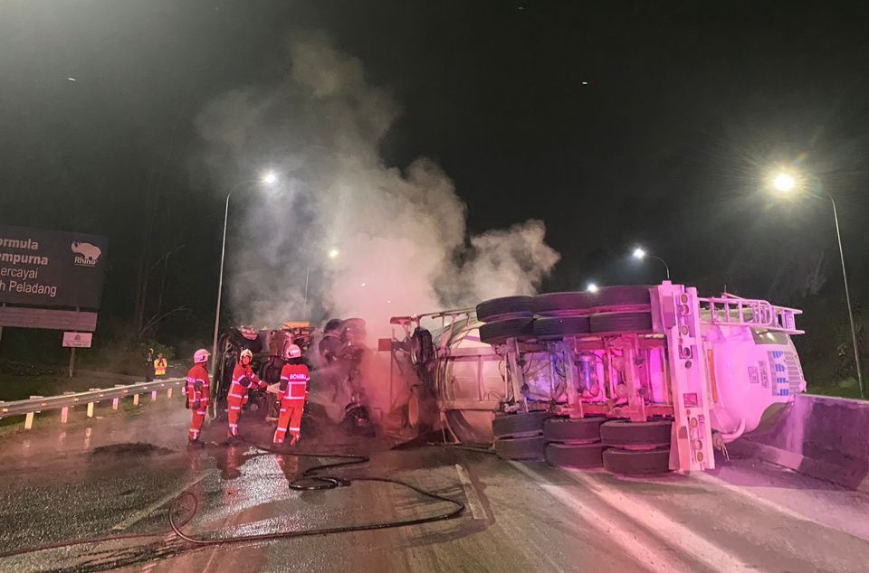 "Komander operasi melaporkan, kebakaran membabitkan sebuah lori membawa muatan debu simen dan terdapat seorang mangsa," katanya dalam kenyataan.