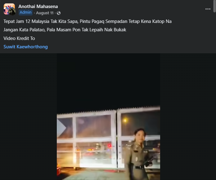 “Tepat jam 12 waktu Malaysia, walaupun kita beri salam, pintu pagar sempadan tetap akan ditutup. Jangan palatao, orang biasa pun tak akan dapat buka," kata pengguna Facebook itu.