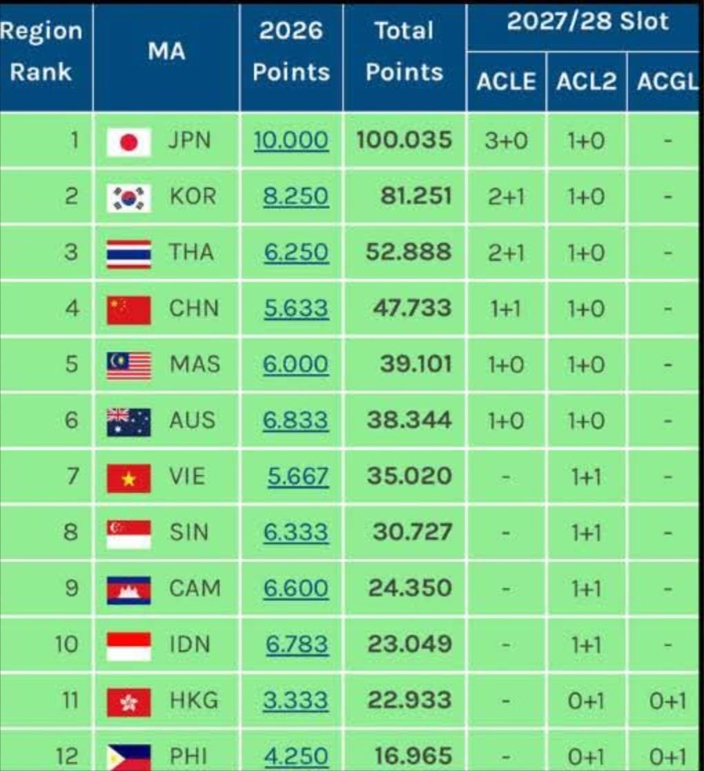 Kelebihan itu sekali gus memastikan peluang negara untuk menambah slot pasukan ke ACL Elite serta ACL Two pada musim-musim akan datang semakin cerah.