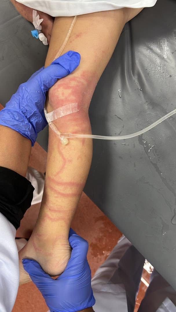 Kesan sengatan obor-obor yang mengorbankan kanak-kanak berusia dua tahun. — Facebook/Info Kemalangan Langkawi