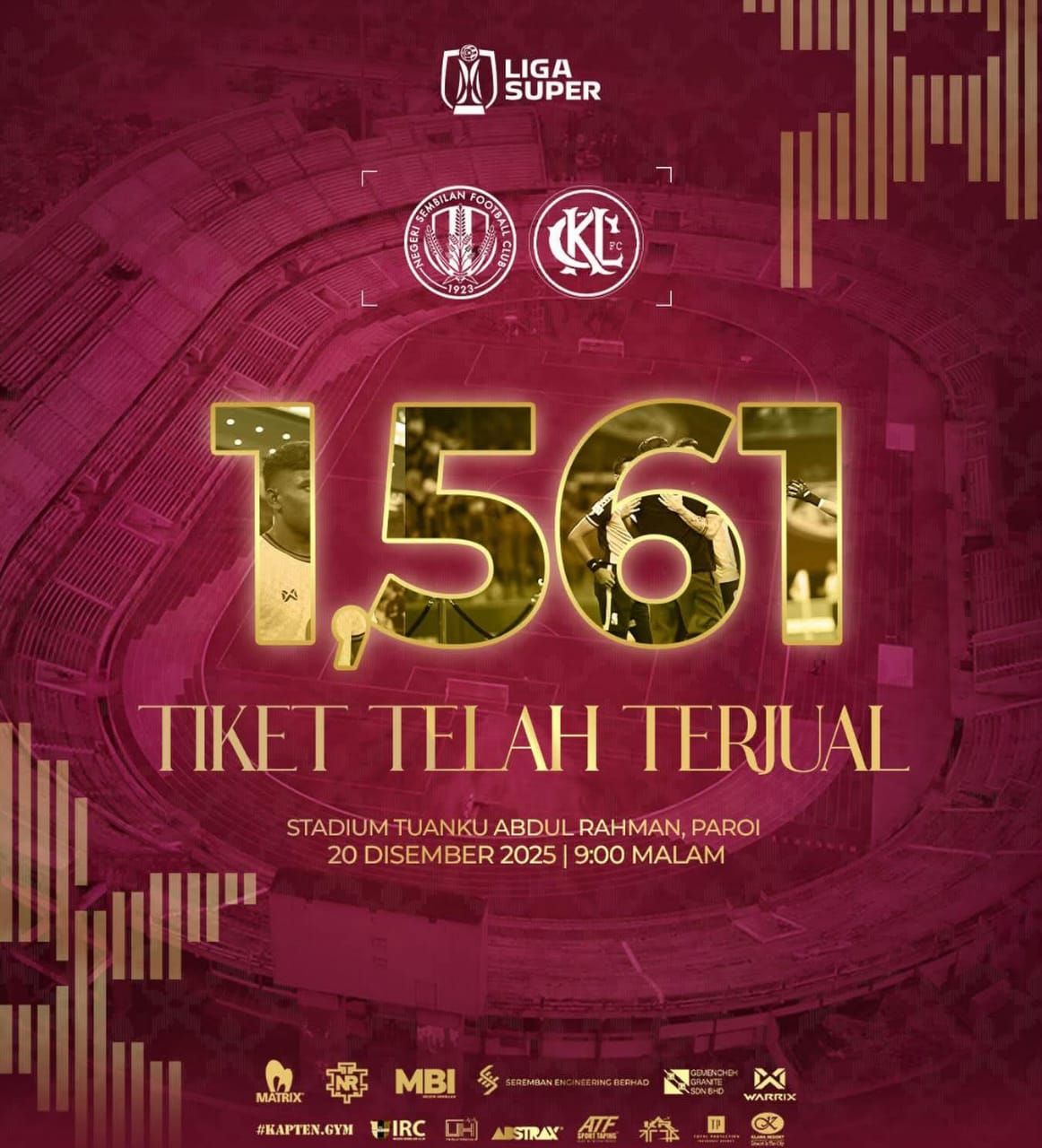 Jualan tiket antara NSFC bertemu KL City masih belum mencapai 2,000 setakat ini. — Facebook/NSFC
