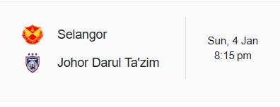 Selangor lawan JDT adalah pada 4 Januari sementara jendela perpindahan Liga Malaysia dibuka sehari kemudian.