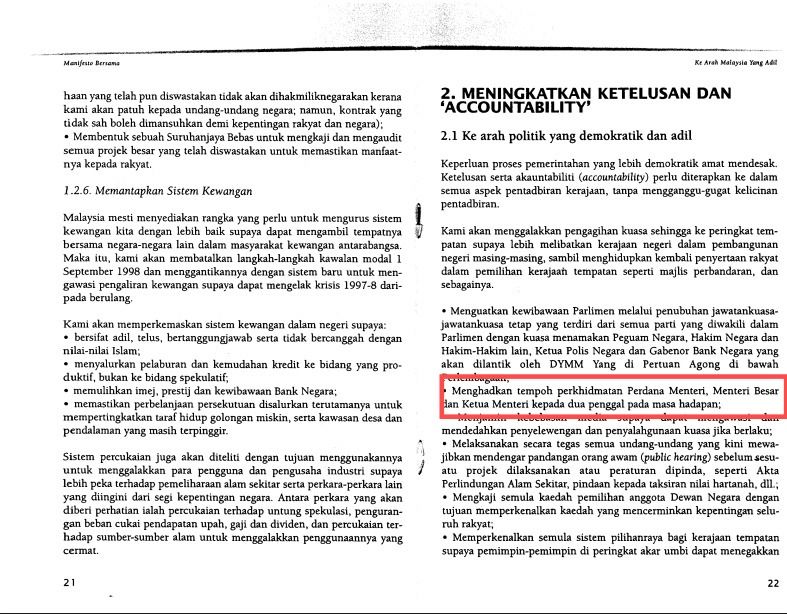 Had tempoh pemerintahan Perdana Menteri pernah disertakan dalam manifesto Barisan Alternatif pada 1999.