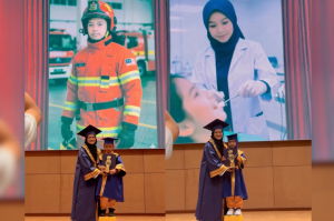 [VIDEO] Ibu bapa teruja lihat impian kerjaya anak dipamer menerusi 'backdrop' janaan AI di graduasi tadika