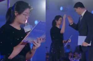 Fasih berbahasa Inggeris, anak remaja legenda bola keranjang China jadi 'penterjemah' bapa di pentas majlis amal