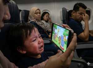 'Tak ada line sekarang', lelaki kecewa bapa biar anak nangis nak gajet, ganggu ketenteraman penumpang