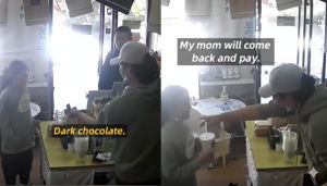 KANAK-KANAK berkenaan dilihat masuk ke dalam kafe dan bertanya sama ada mereka ada menjual coklat.