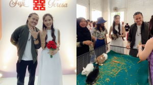 [VIDEO] Suami isteri guna semula kelopak bunga ros, 'marigold' majlis kahwin, hasil busana teknik cetakan ekologi