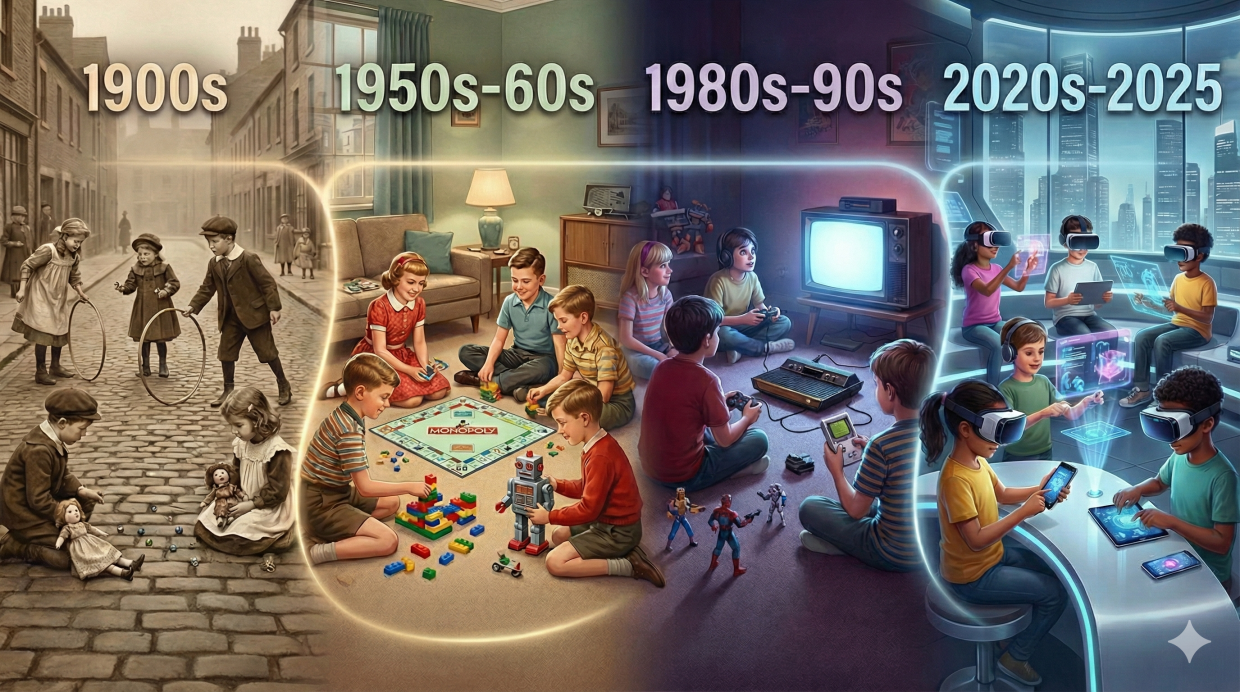 TRANSFORMASI budaya permainan kanak-kanak di rumah telah berkembang secara dramatik dari era mainan buatan tangan kepada dominasi konsol digital.
