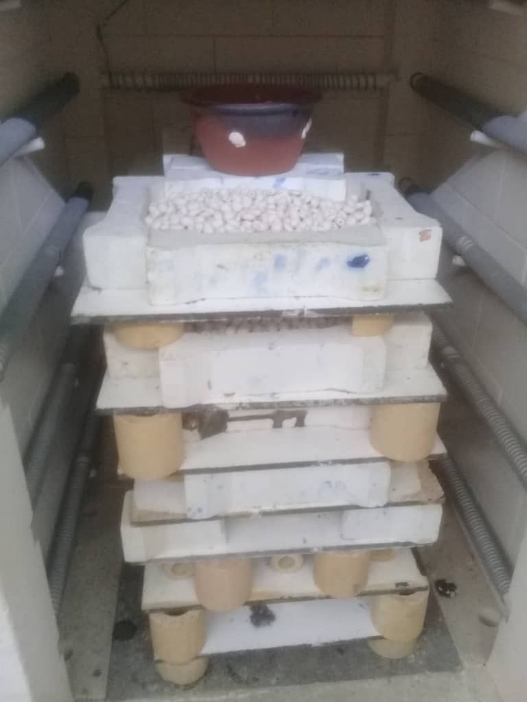 Tanah liat kemudiannya dibakar dengan suhu 1080 darjah celsius.