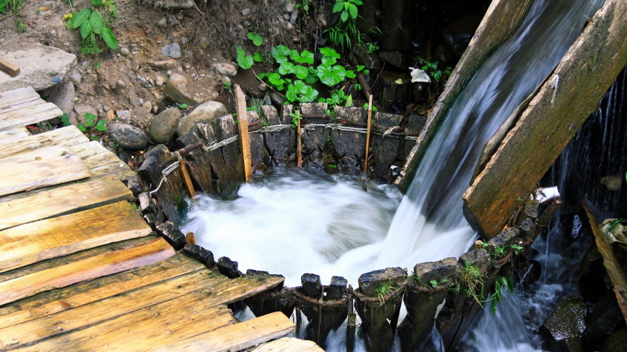 Ia tidak menggunakan mesin moden namun dicipta satu sistem unik yang menggunakan arus sungai semula jadi untuk mencuci kain dan pakaian.