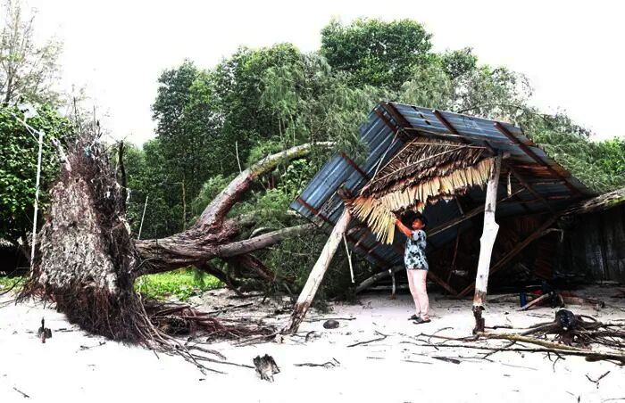 Banyak pokok tumbang, kemudahan awam yang rosak, tebing pantai tidak rata, serta sampah yang bersepah.