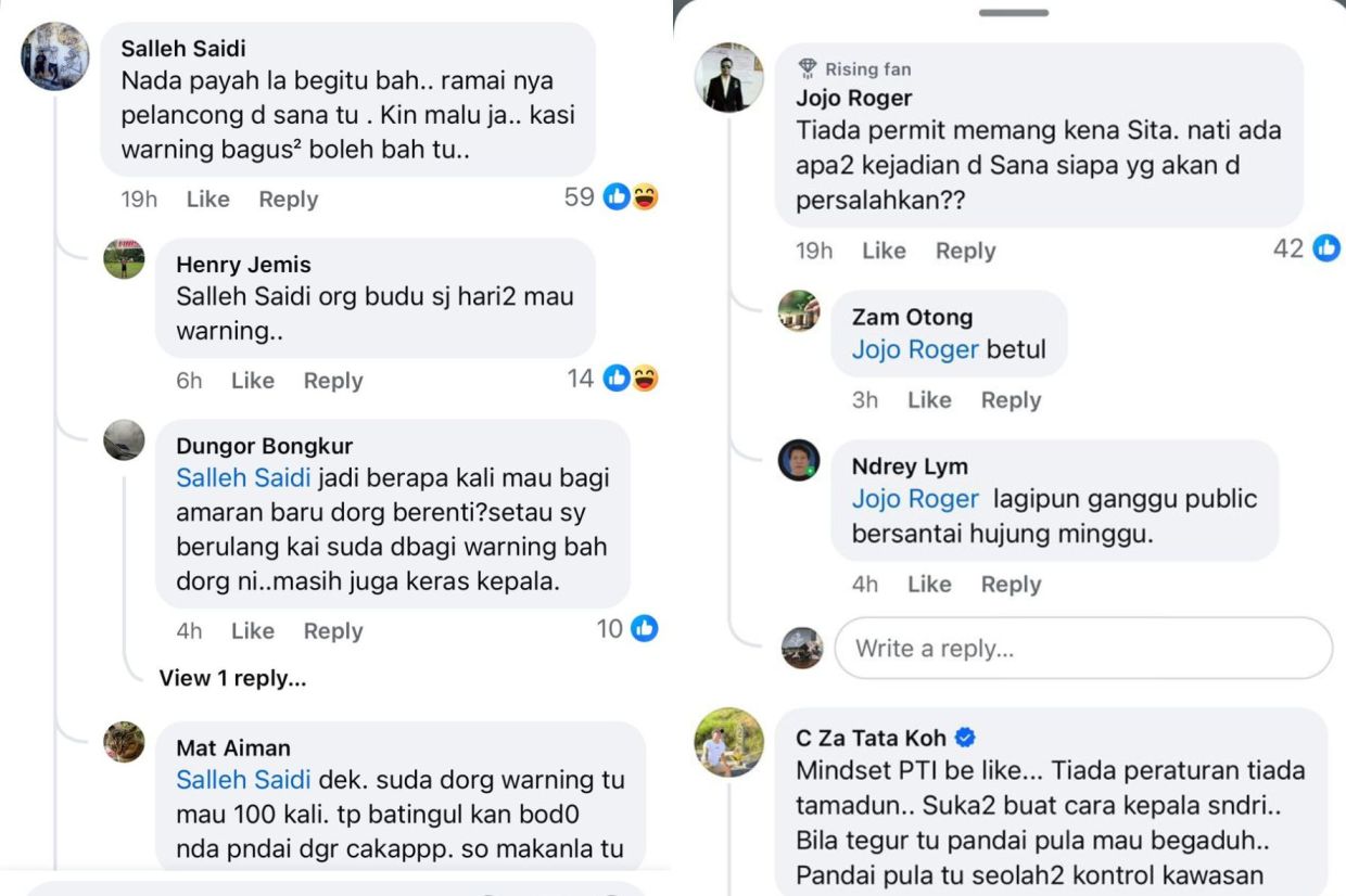 “Tiada peraturan, tiada tamadun. Suka-suka buat cara ikut kepala sendiri. Bila tegur pandai pula nak bergaduh. Pandai pula seolah-olah kawal kawasan,” komen seorang lagi yang seakan-akan bersetuju dengan tindakan tersebut.
