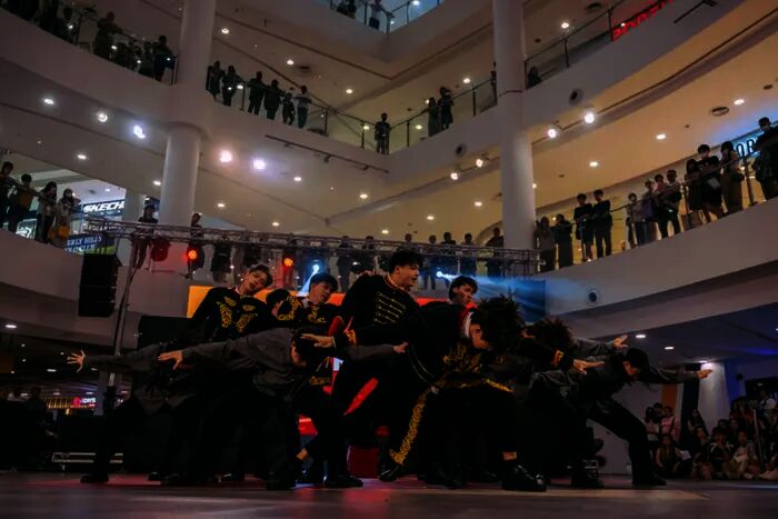 Penonton berbaris di balkoni untuk menceriakan peserta yang datang dari seluruh Asia untuk edisi keempat Battle Mania, pertunjukan tarian jalanan antarabangsa.