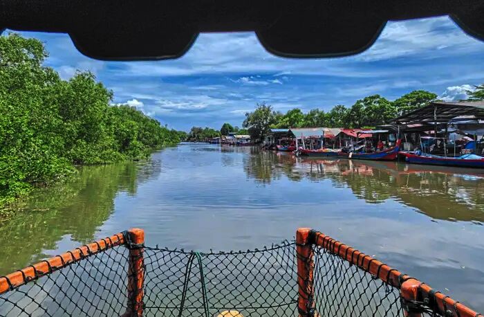 Bising dan kesibukan bandar perlahan-lahan hilang ketika bot meluncur di sepanjang sungai, melepasi pokok bakau berdahan rendah dan dedaunan yang berdeser.