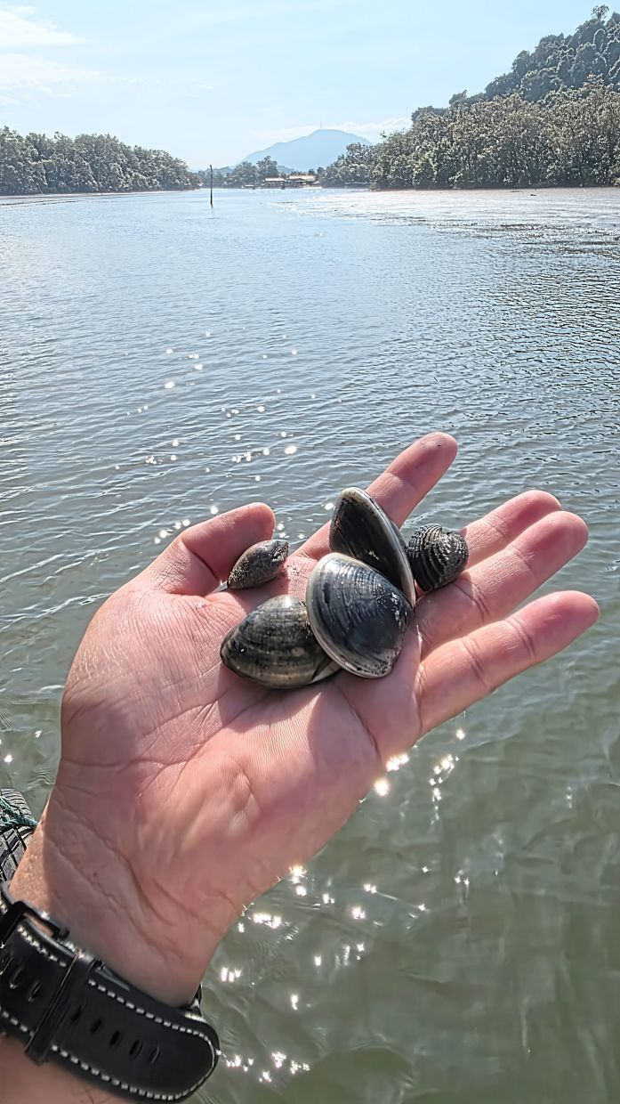Penumpang boleh cuba dengan sendiri untuk menangkap kerang semasa pelayaran sungai.