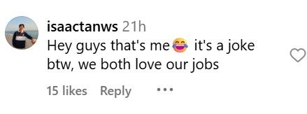 “Hai semua itu saya, ia sekadar melawak. Apa-apa pun kami berdua suka kerja kami,” kata pemilik akaun @isaactanws yang dipercayai tuan kepada video tersebut.
