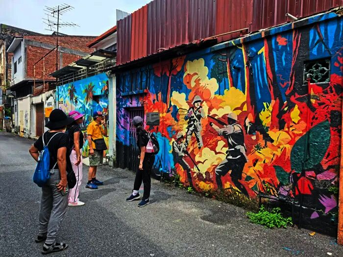 Penulis bersama kumpulannya meneruskan perjalanan menuju ke lorong belakang Jalan Idris, untuk melihat mural kapal korek bijih timah dan kehidupan kampung.