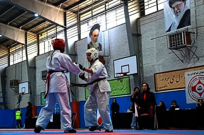 Sepertimana apabila wisel pengadil ditiup yang menandakan bermulanya perlawanan, dua kanak-kanak perempuan Iran berusia lima tahun, mempersembahkan satu perlawanan karate yang diperhatikan dengan penuh teliti.