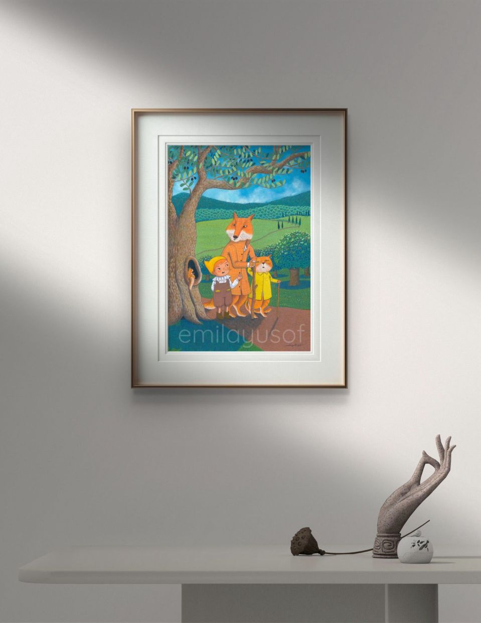 Karya Emila, yang diinspirasikan oleh Bab 12 The Adventures of Pinocchio: The Story of a Puppet itu, dilukis menggunakan cat akrilik dengan teknik yang sama seperti yang digunakannya dalam karya seni bertemakan landskap.
