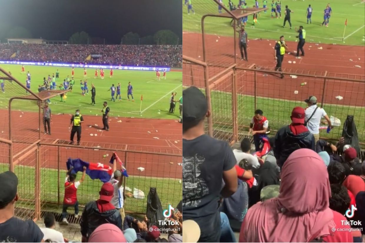 Tangkap layar memaparkan situasi penyokong yang bertindak di luar kawalan di Stadium Likas pada tahun lalu.