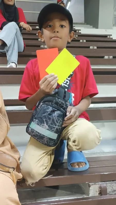 Kisah tersebut dikongsikan di Threads Coach Yuzz memaparkan peminat kanak-kanak itu memegang kad merah dan kuning milik pengadil permainan.