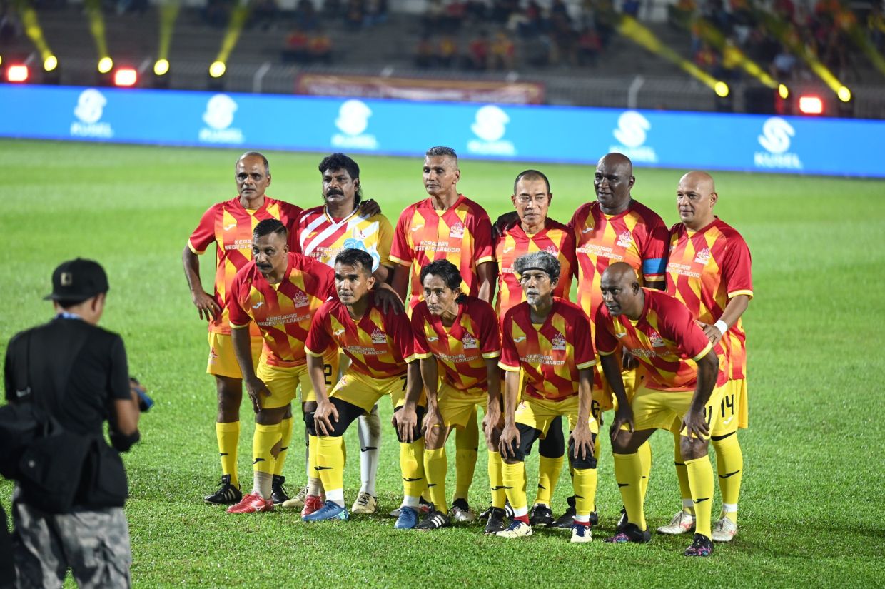 Barisan pemain legenda Selangor yang beraksi dalam aksi Veteran Selangor menentang Veteran Singapura.