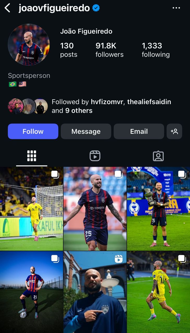 Figueiredo masih meletakkan bendera Malaysia di bio Instagram.
