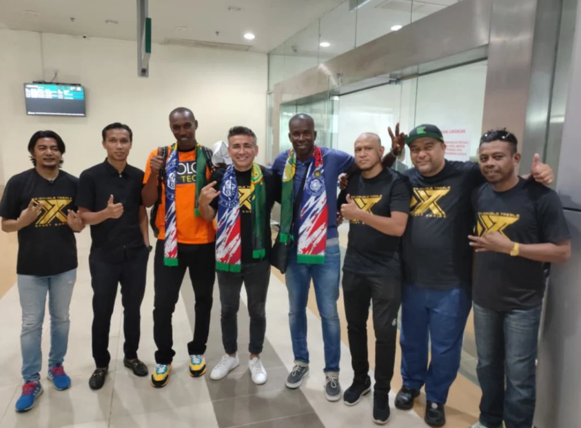 Marlon (empat dari kanan) dan Huggins (tiga dari kiri) disambut oleh bekas pemain-pemain bola sepak Kedah Darul Aman era 'Double Treble' musim 2007/2008 sebaik tiba di Kedah. — Facebook/Group Info Bola Kedah