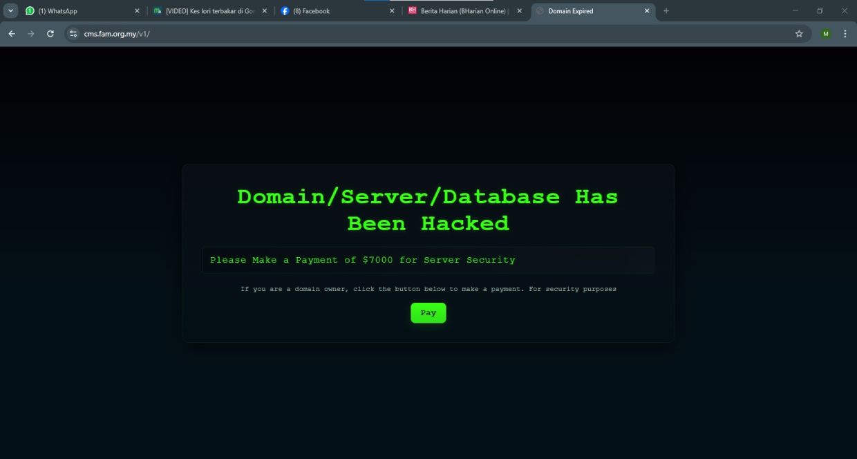 Semakan mendapati laman sesawang CMS-FAM digodam pihak tidak dikenal pasti.