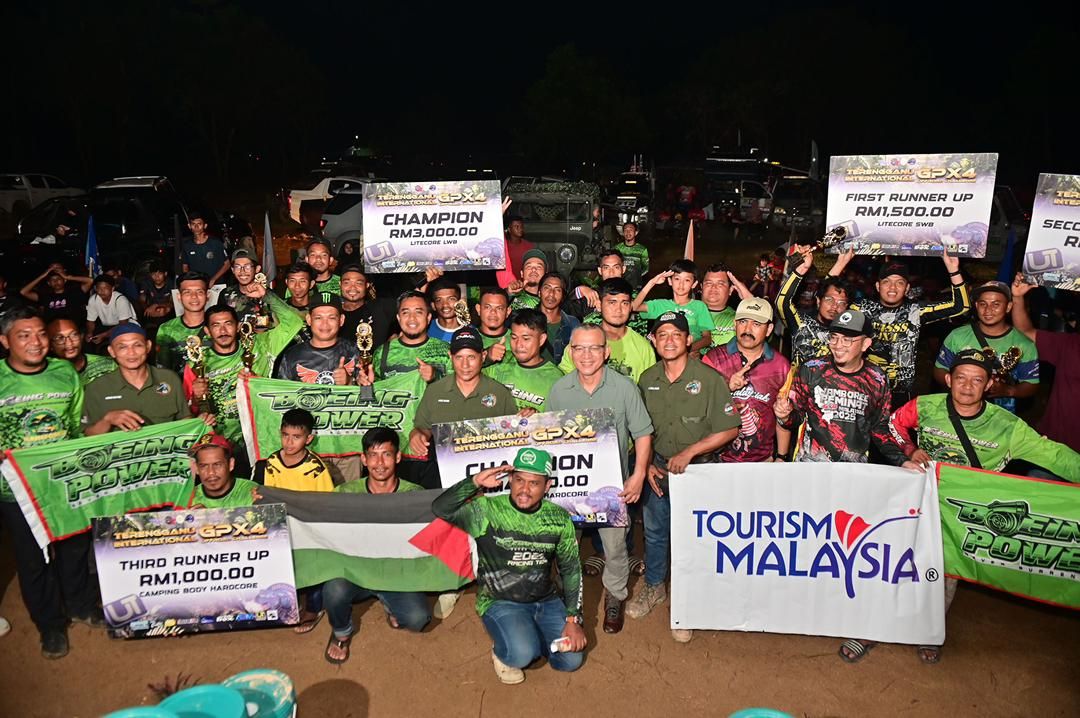 Razali (tiga dari kiri) sewaktu hadir menyempurnakan majlis penutup dan penyampaian hadiah kepada pemenang Terengganu International GPx4 Offroad Challenge yang telah berlangsung di Belukar Bukit.