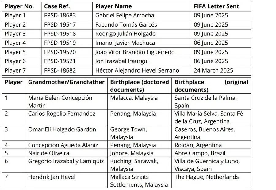 FIFA mendedahkan latar belakang kesemua tujuh pemain warisan negara.