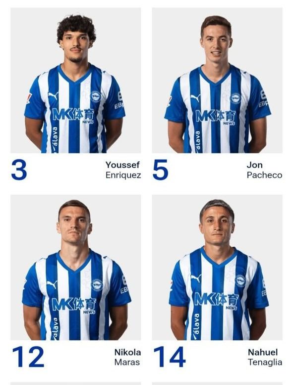 Berdasarkan laman sesawang Depertivo Alaves, pasukan pada tangga ke-10 liga itu hanya menyenaraikan Yusuf Enriquez, Jon Pacheco, Nikola Maras, Nahuel Tenaglia, Jonny Otto, Moussa Diarra dan Victor Berhenti.